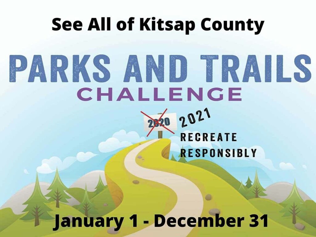 The Parks & Trails Challenge is a way of encouraging people to get outside and see all the wonderful recreational opportunities we have here in Kitsap County. We investigate every resource we can find and have a running list of over 200 parks, trails and places we want to visit.